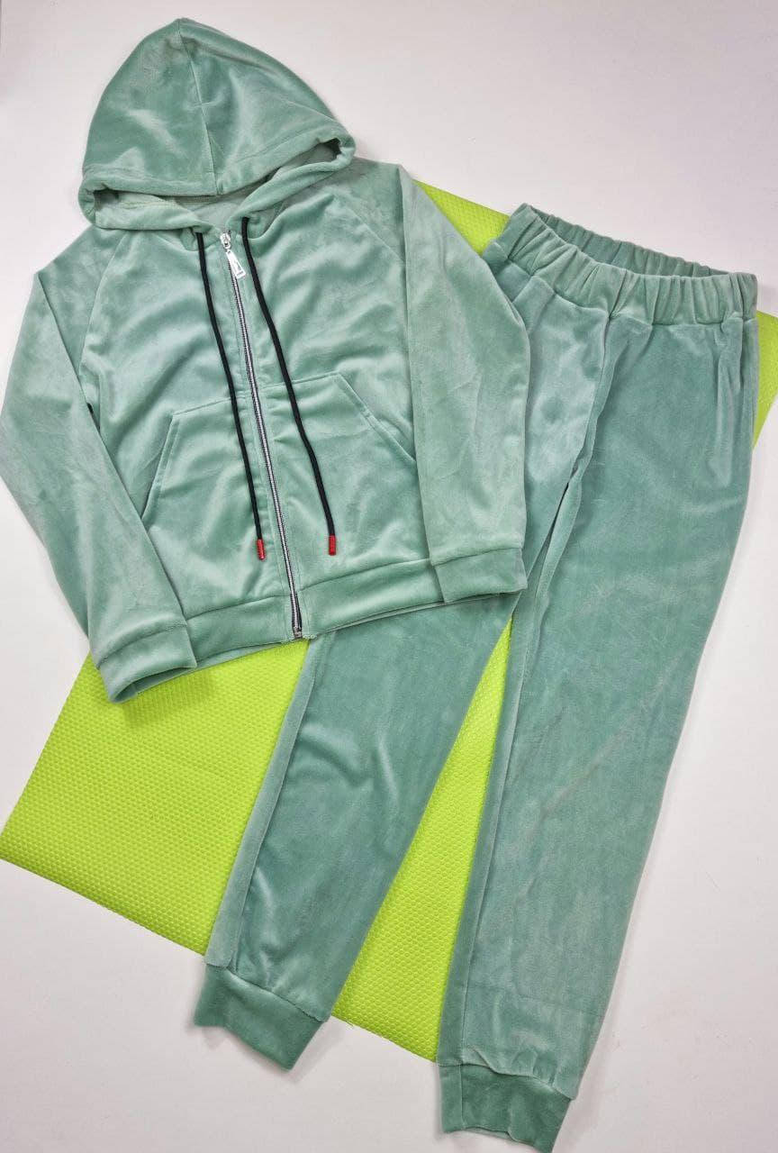 Велюровый костюм на змейке на девочку , 134 см, фисташковый