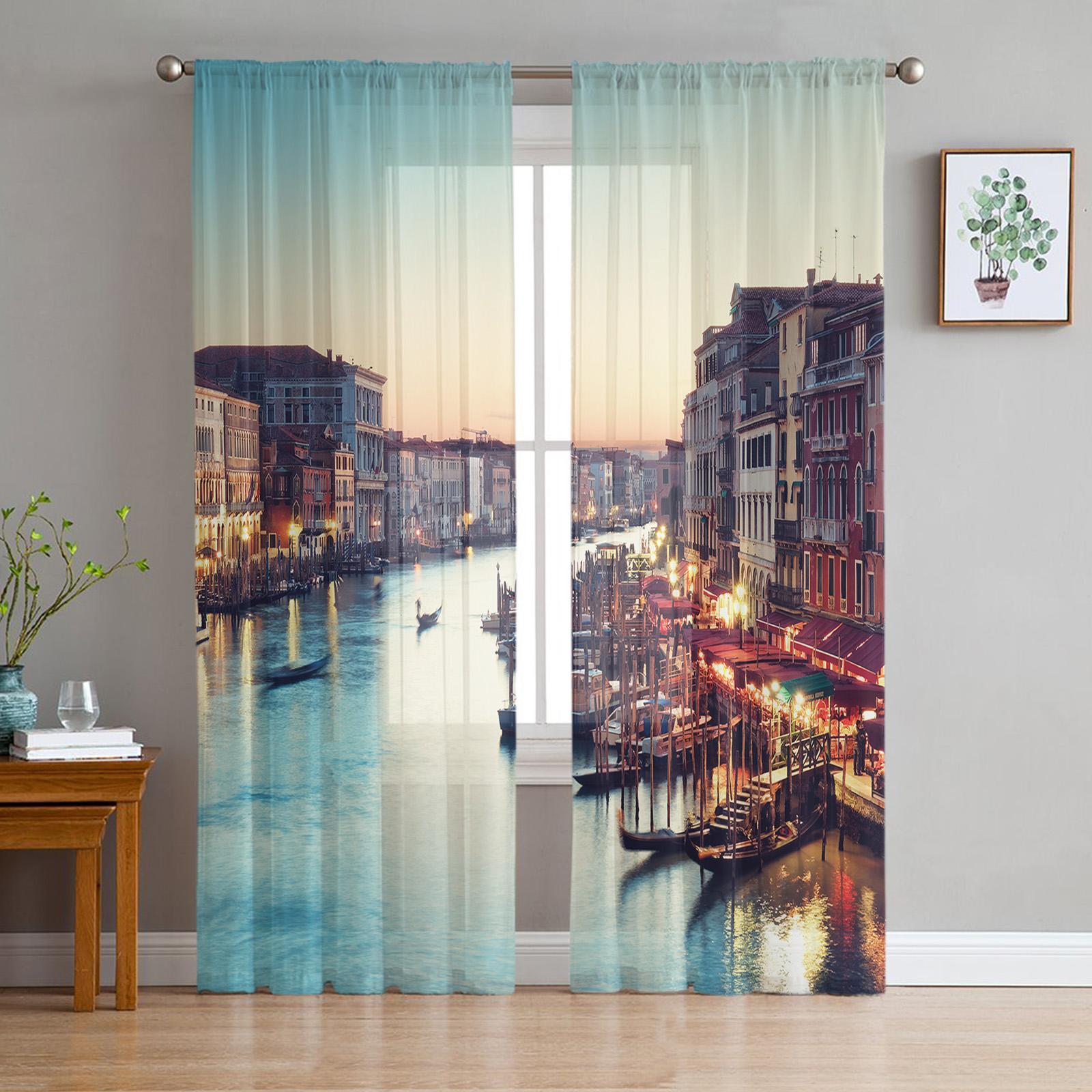 Венеция Сумерки Виды Дома Окна Обработка Тюль Современные Прозрачные Шторы для Кухни Гостиной Спальни Шторы Украшения W135 x H114cm