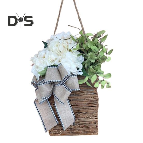 Венок из гортензии, подвесная гортензия на дверь, в корзине, венок из гортензии с бантом для украшения дома, крыльца, стены фермерского дома B