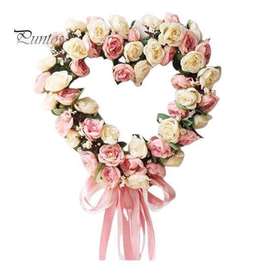 Венок из роз в форме сердца, гирлянда из искусственных роз на День святого Валентина с лентами, цветочный венок для входной двери на годовщину свадьбы, украшение розовый