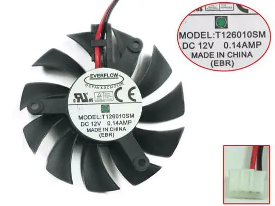 Вентилятор охлаждения сервера Everflow T126010SM, 12 В постоянного тока, 0,14 А, 55 мм, диаметр 39 мм, 2 провода