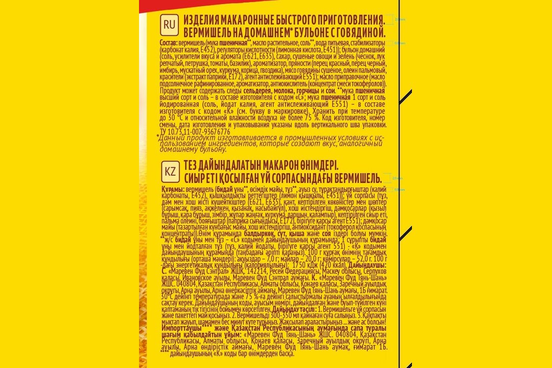 Вермишель Роллтон на домашнем бульоне с говядиной 60 г