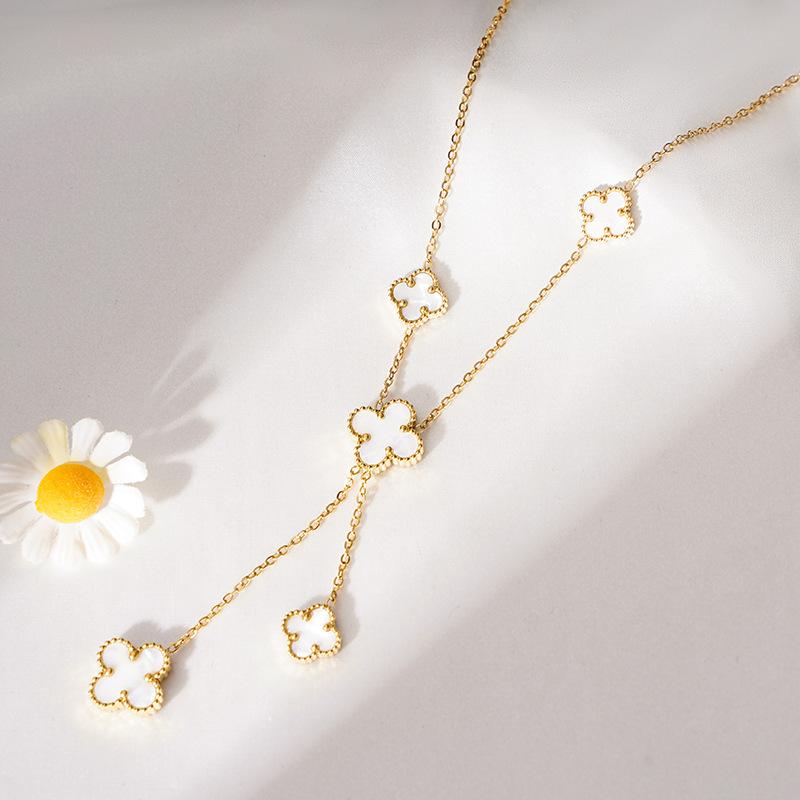 Версия высокого уровня, двустороннее ожерелье с пятью четырехлистными клеверами, водонепроницаемые и защищенные от пота украшения из титановой стали 18K, лучший подарок для девочек белый