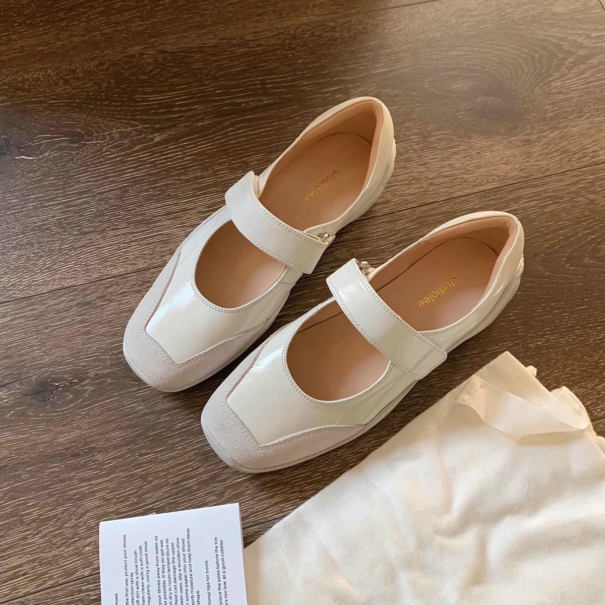 Версия из коровьей кожи винограда мать та же ленивая липучка мягкая функция ветер плоская подошва натуральная кожа Мэри Джейн одиночные туфли женские весна и осень 40