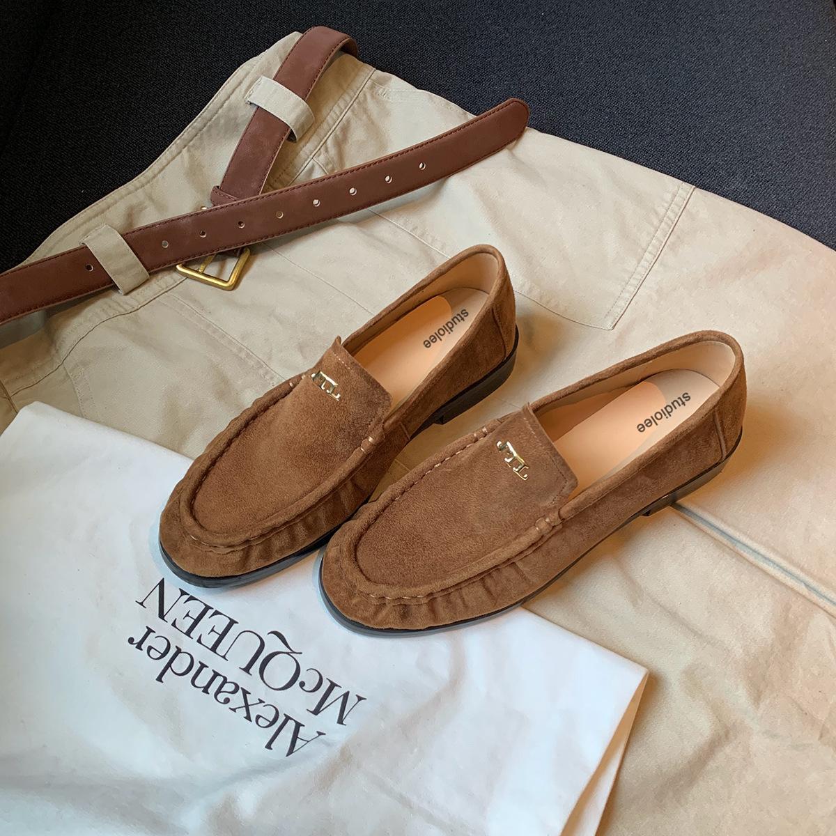 Версия из коровьей кожи~ Виноградная мама те же старые деньги ветер круглый носок плиссированные ретро на низком каблуке для работы универсальные ленивые лоферы женские 40