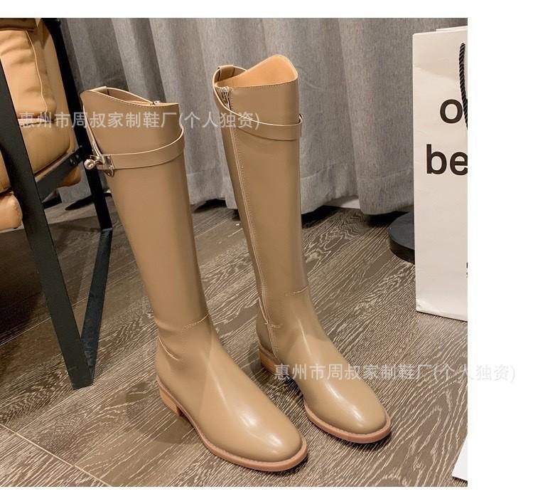 Версия из коровьей кожи~ Премиальная кожа для пряжки ремня, рыцарские ботинки, женские зимние ботфорты, высокие сапоги, ботфорты на плоской подошве 40
