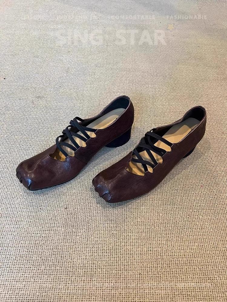 Версия из овчины ~ ретро-нишевая одинарная туфля с перекрестными ремешками, плиссированная кожаная обувь с квадратным носом и неглубоким горлом, женские балетки 40 коричневый