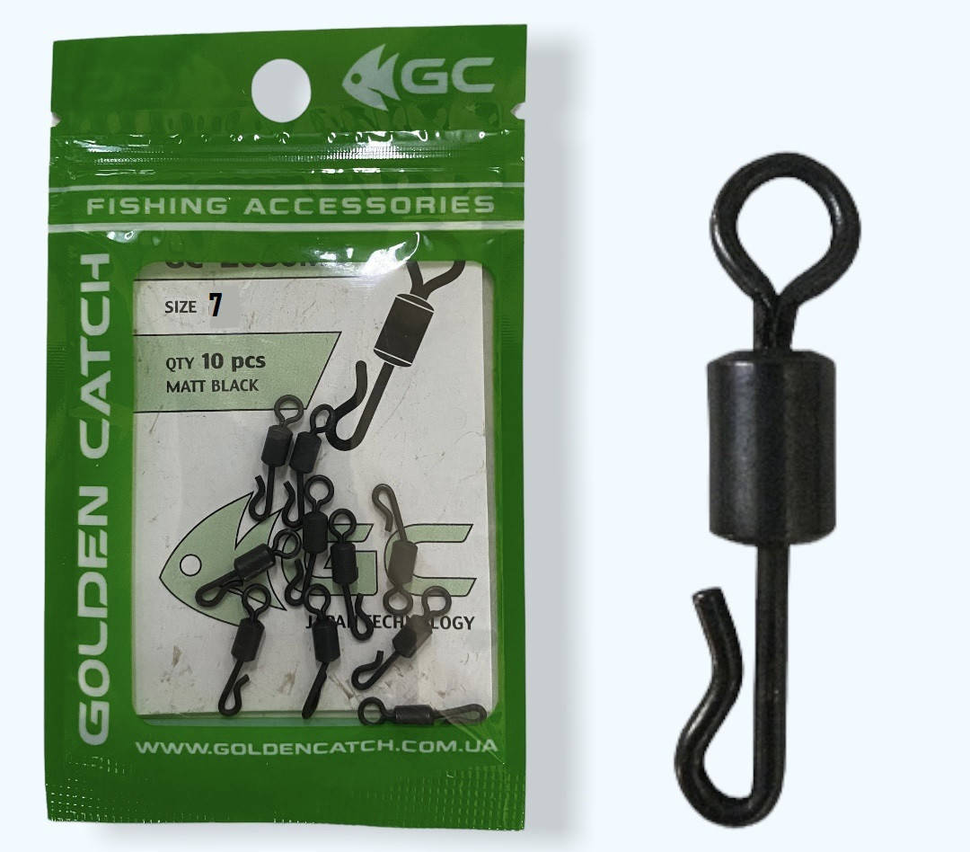 Вертлюг с застежкой для быстрой замены поводков. Вертлюг стандартного размера дает возможность использовать Quick Swap с клипсами и грузами большинства производителей.