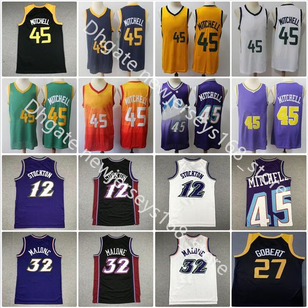 stitched basketball donovan 45 mitchell man rudy 27 gobert blue white yellow purple karl 32 malone 12 john stockton retro jersey wholesale, Black;red