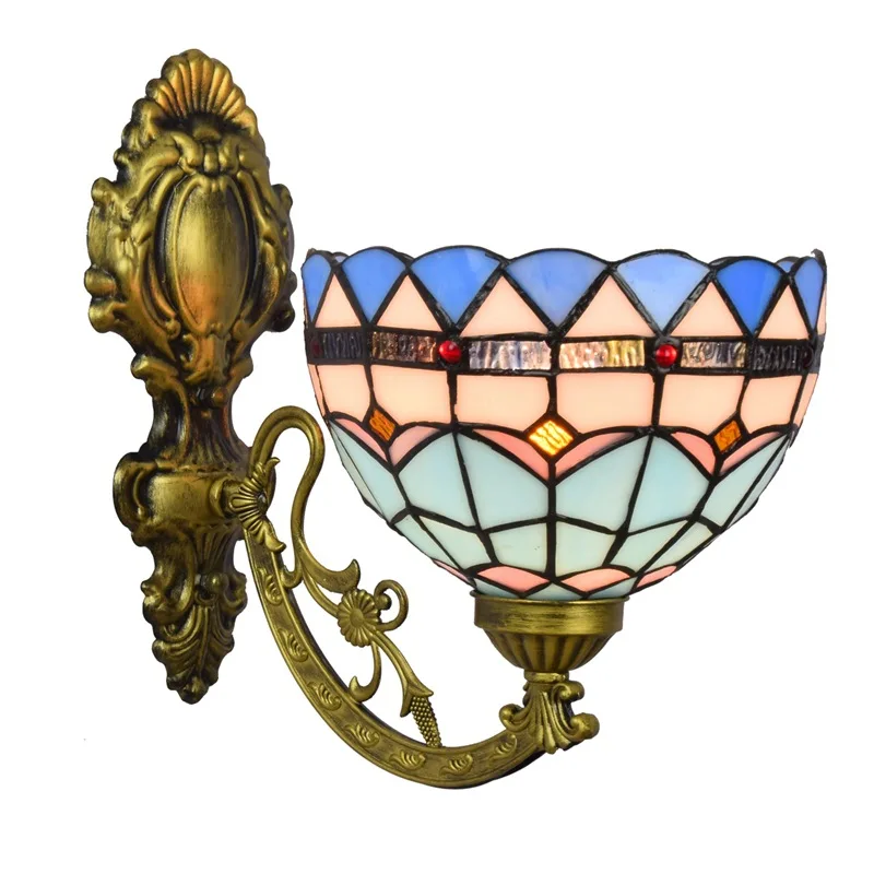 Tiffany stained glass retro mirror headlamp pastoral bedside wall lamp aisle Mediterranean glazed wall lamp