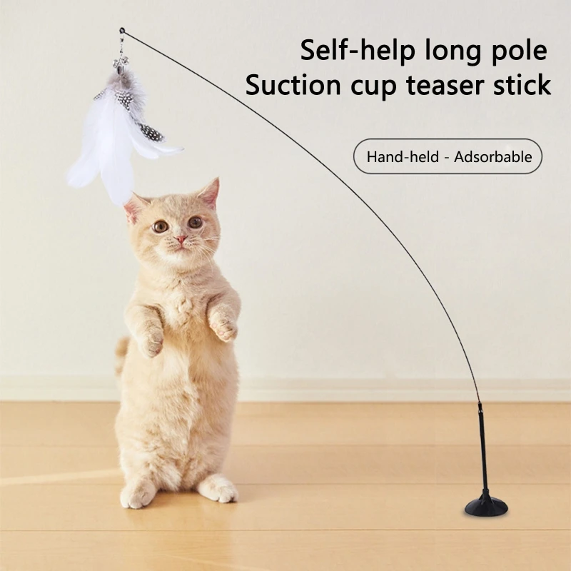 Веселая игрушка-палочка для кошек, игрушечная палочка на присоске для котят, имитация перьев, игрушки для кошек