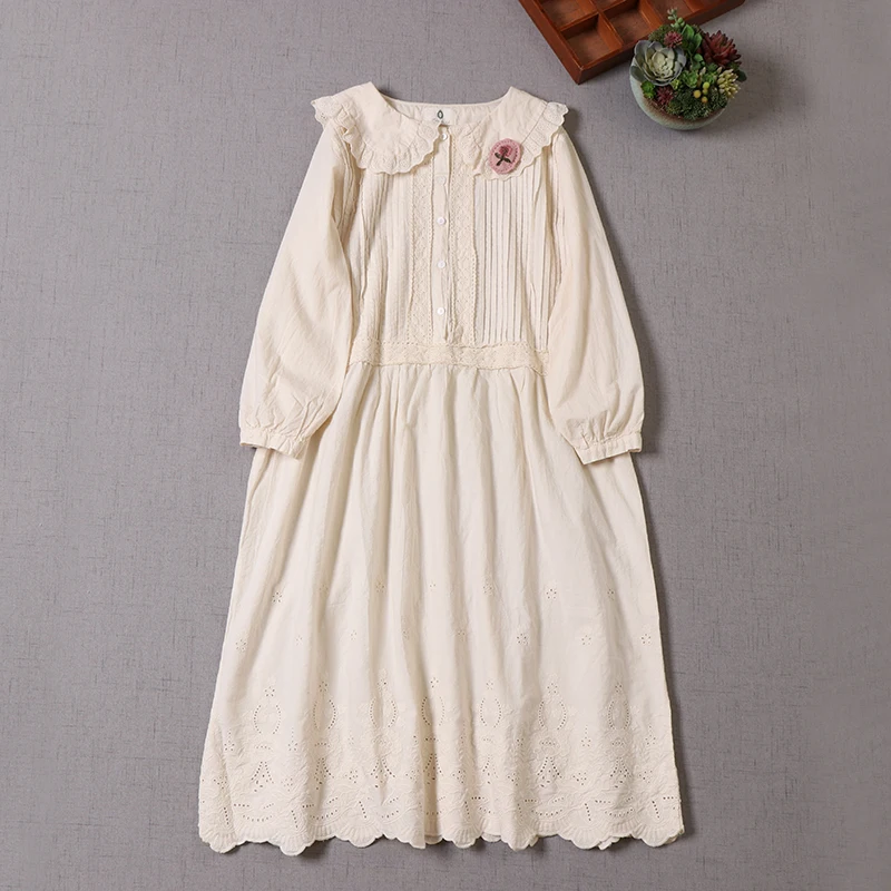Весеннее Новое милое однотонное хлопковое платье с вышивкой, женское платье миди с длинным рукавом, K88