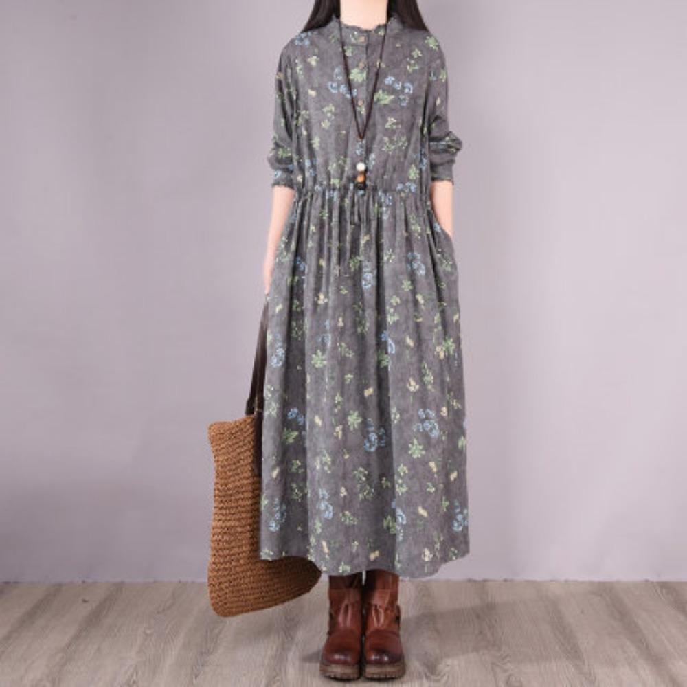 Весеннее Свободное Платье Большого Размера Женское Цветочное на Шнуровке XL серый