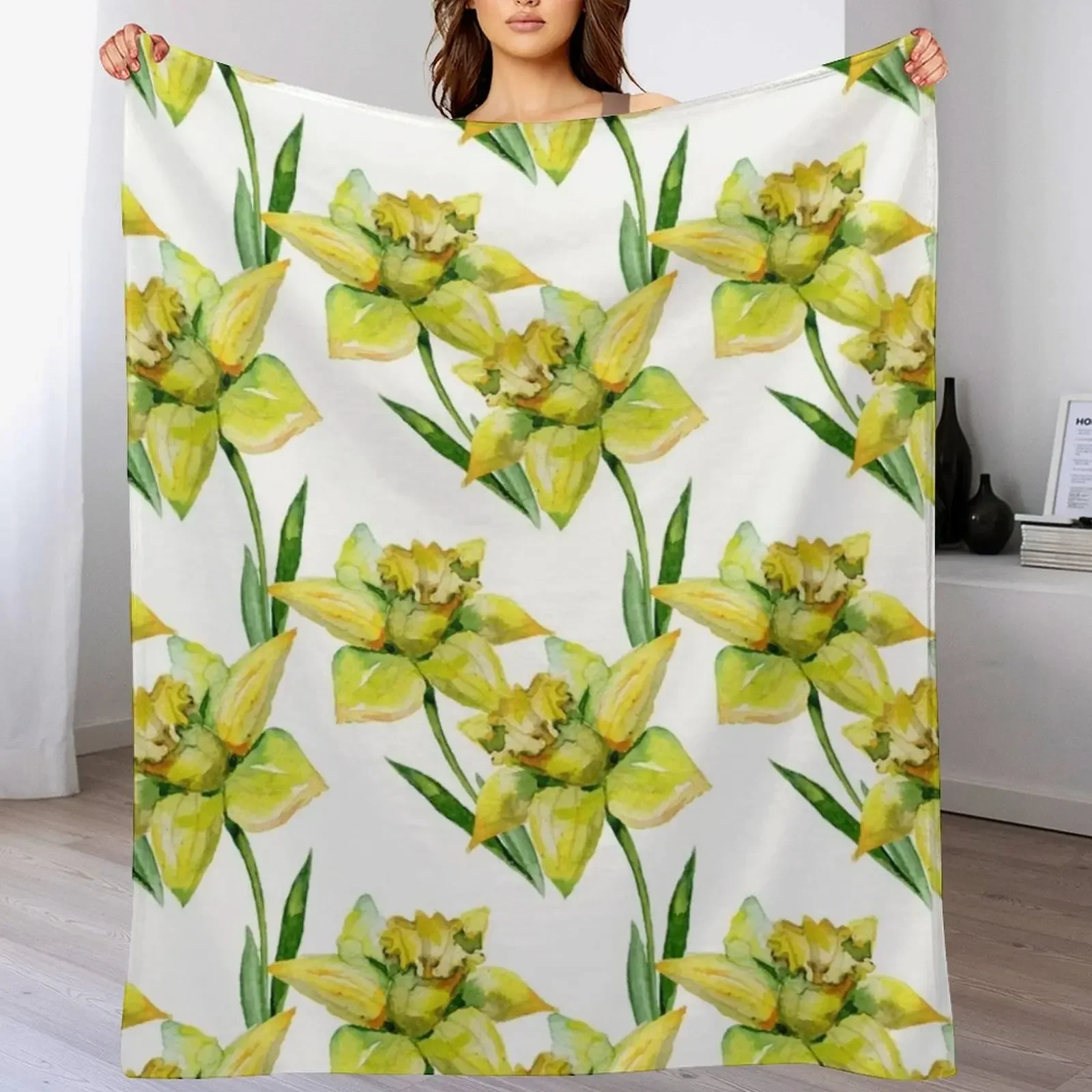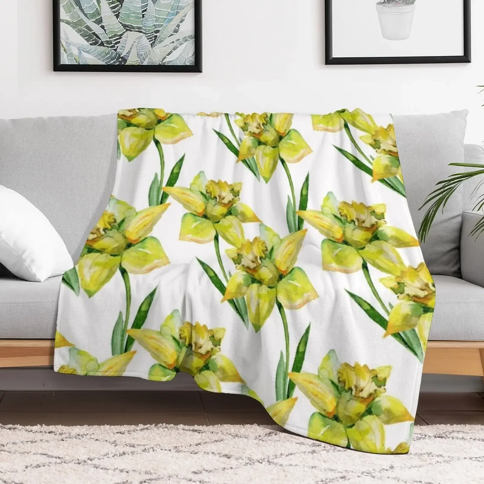 Весеннее желтое зеленое акварельное кирпичное одеяло с цветочным рисунком, пледы для кровати, одеяла