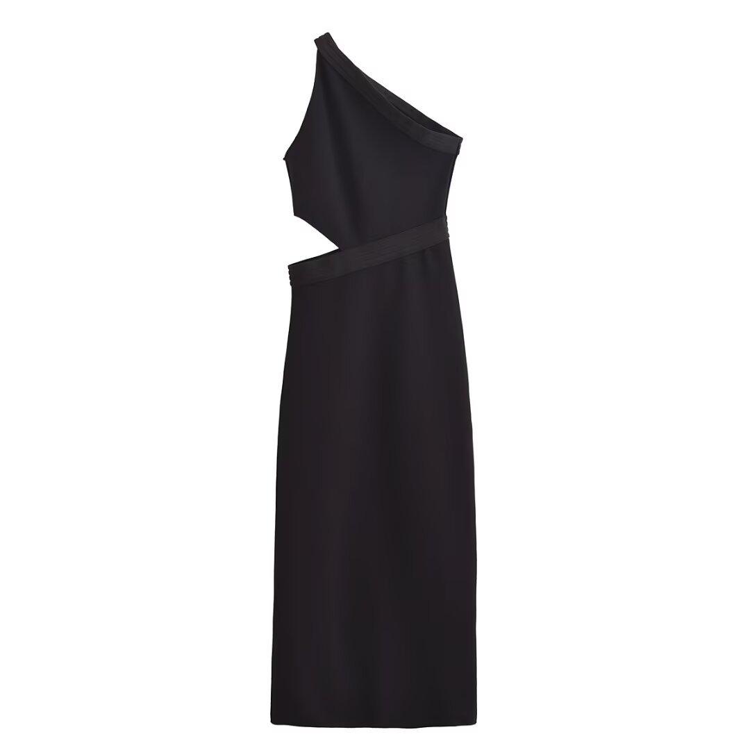 Весеннее женское асимметричное платье с открытым плечом в европейском и американском стиле 2025 M чёрный