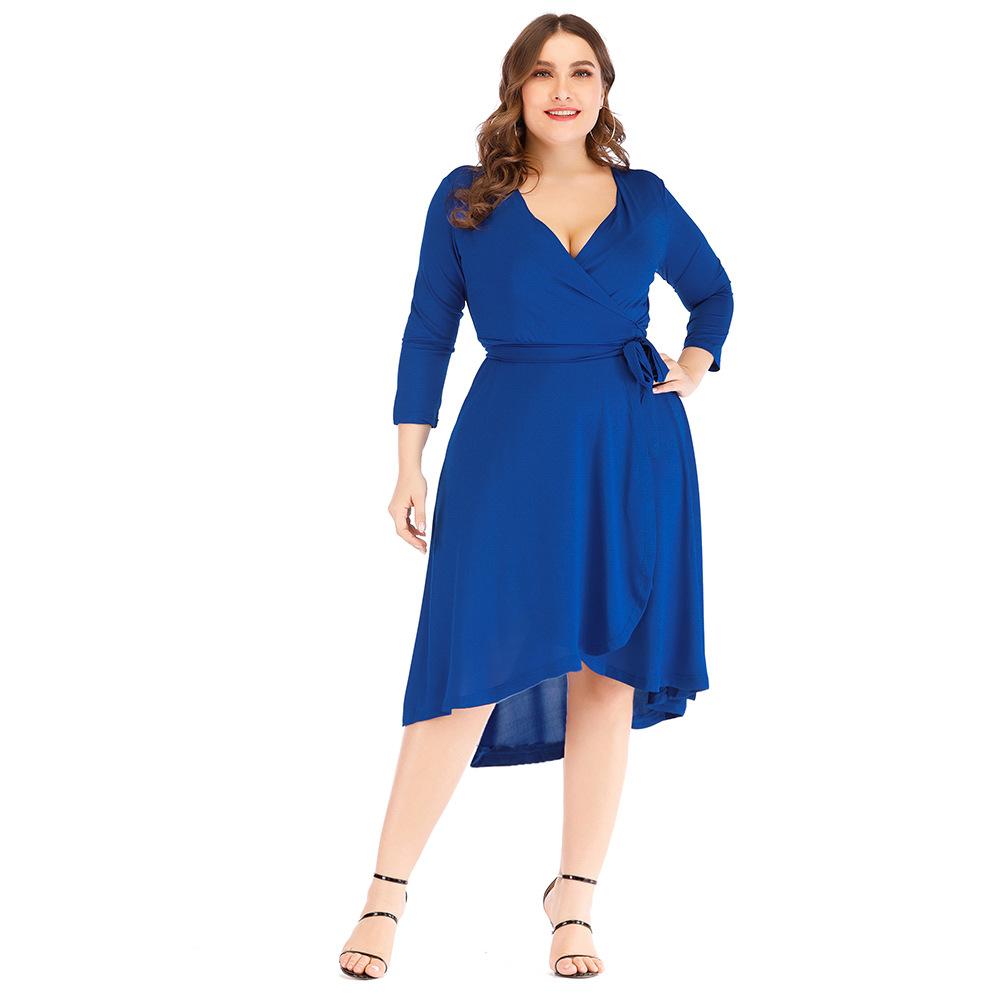 Весенне-летнее женское платье большого размера с v-образным вырезом, однотонное хип-платье с длинными рукавами 5XL синий