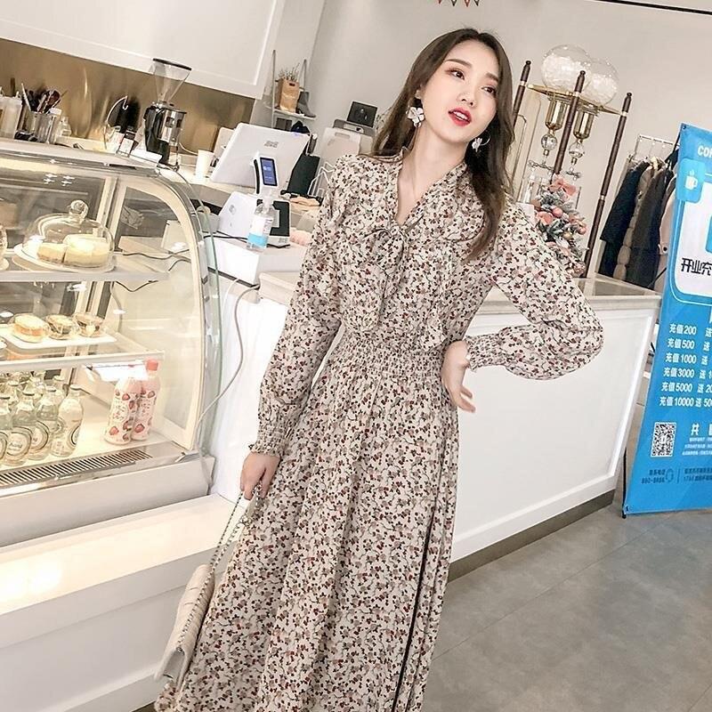 Весенне-летнее модное платье Vestidos, женское винтажное платье с цветочным принтом и эластичной резинкой на талии, свободное шифоновое платье трапециевидной формы с v-образным вырезом, женские повседневные платья XXL