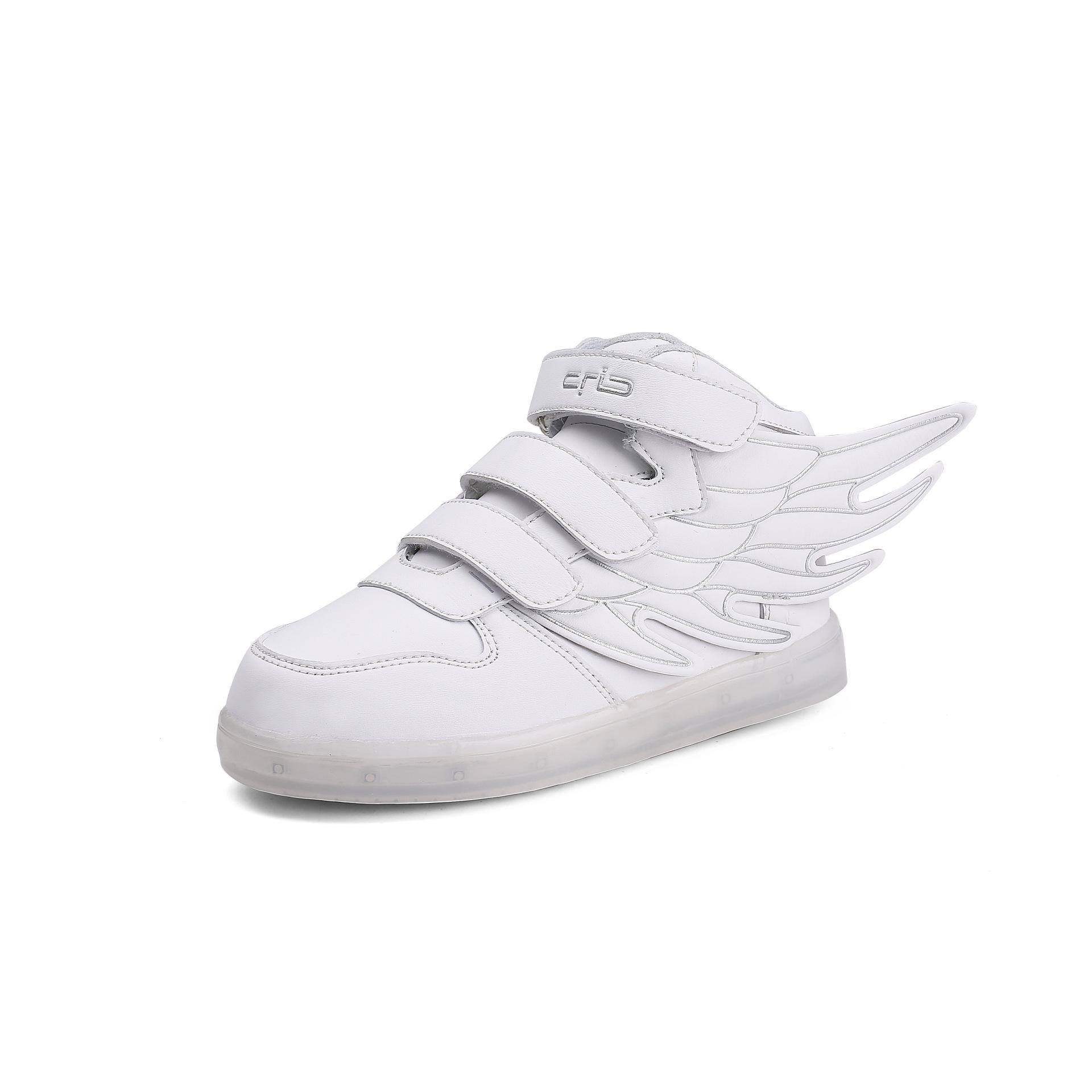 Весенне-летняя детская высокая повседневная обувь модная легкая обувь перезаряжаемая светящаяся обувь липучка крылья одноклассники 37 белый