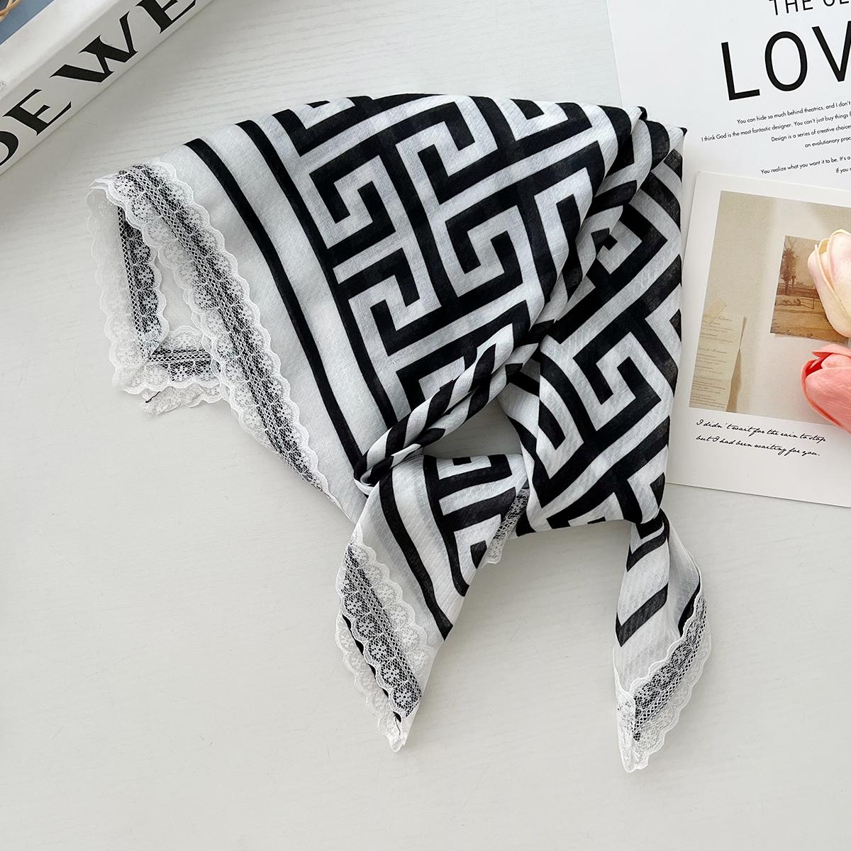 Весенне-летняя женская пасторальная стильная милая и свежая декоративная косынка, французское кружево, шелковый шарф, шейный, маленький квадратный, аксессуары для волос 58-58cm