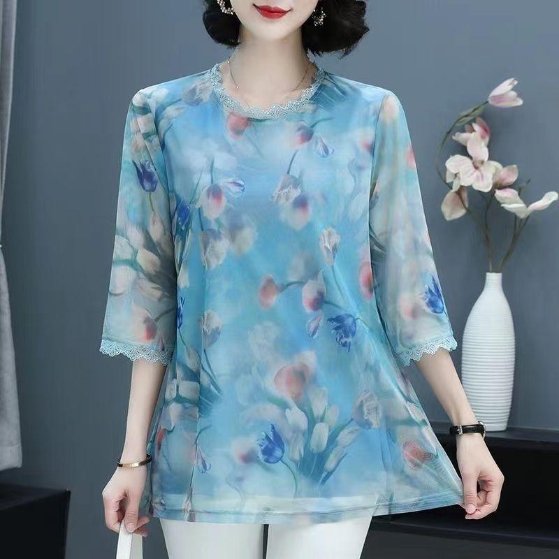 Весенне-летняя женская шифоновая рубашка, модная тонкая, чтобы прикрыть живот, сетчатая марлевая блузка с тонкими секциями, новая женская рубашка 5XL recommended 160-90kg