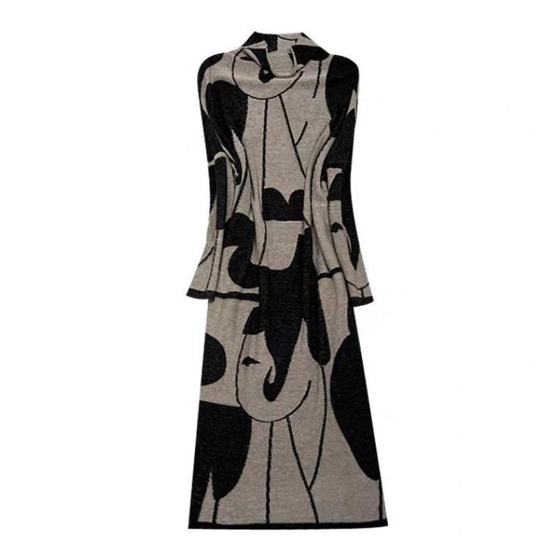 Весенне-осеннее женское платье, свободное большое темпераментное модное трикотажное платье, шерстяное платье с длинными рукавами для матери L