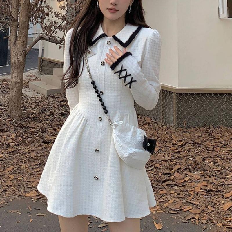Весенне-осеннее женское платье. Маленькое ароматное белое платье. Короткое платье премиум-класса с длинными рукавами. XL белый