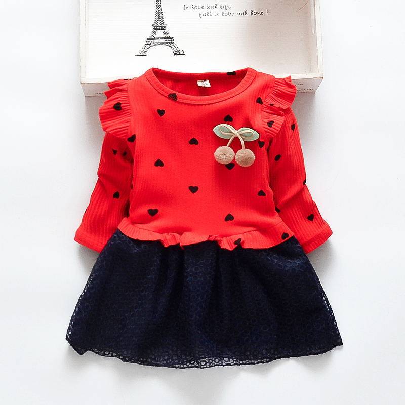 Весенне-осеннее платье с длинными рукавами для девочек, новая корейская детская сетчатая юбка принцессы, детская одежда 2-3 Years красный