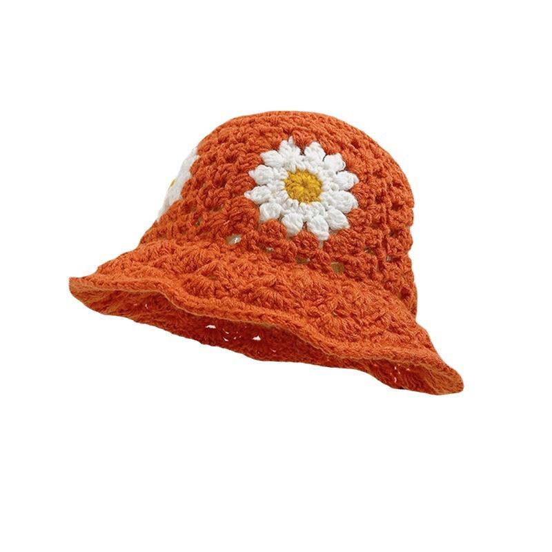 Весенне-осенние цветы Вязаная шапка ручной работы Детская нишевая полая шерстяная Универсальная шляпа-ведро Подчеркивает маленький тренд
