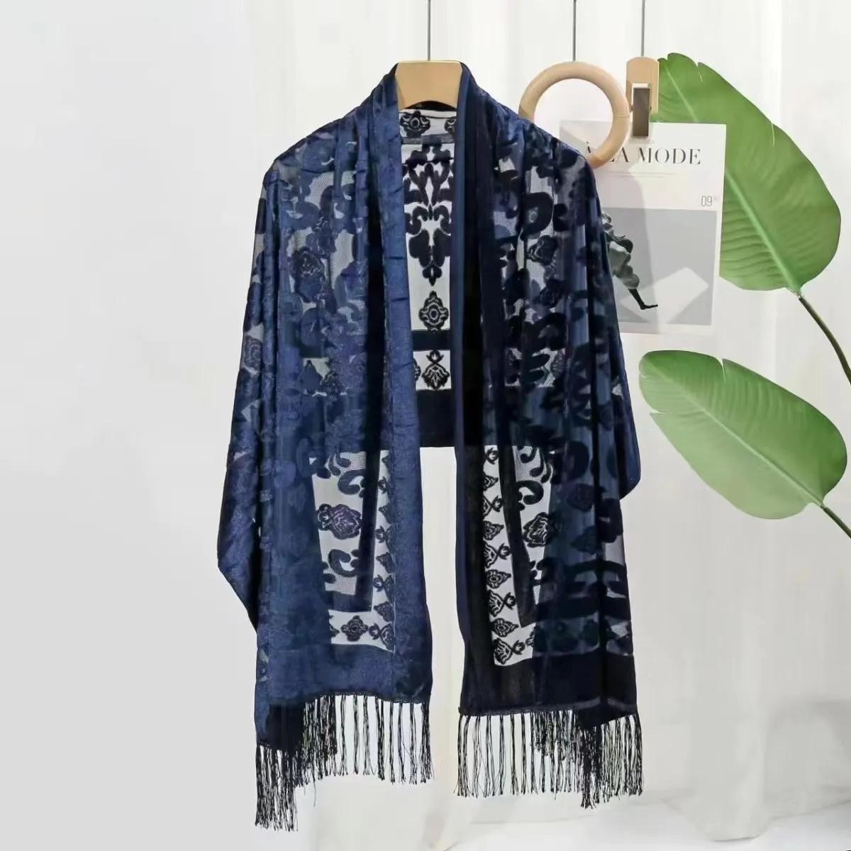 Весенне-осенний бархатный шарф в этническом стиле, теплая шаль с кисточками, вышитый шарф One size