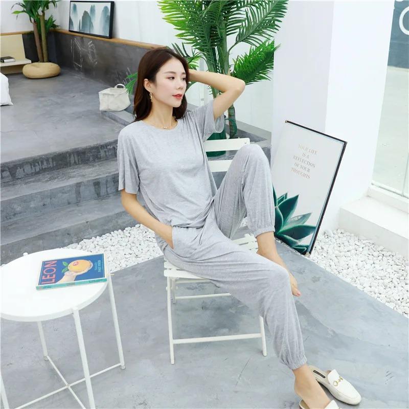 Весенне-осенний женский модальный пижамный комплект, большой размер, домашняя одежда, свободная летняя пижама из двух частей, женский спальный комплект L