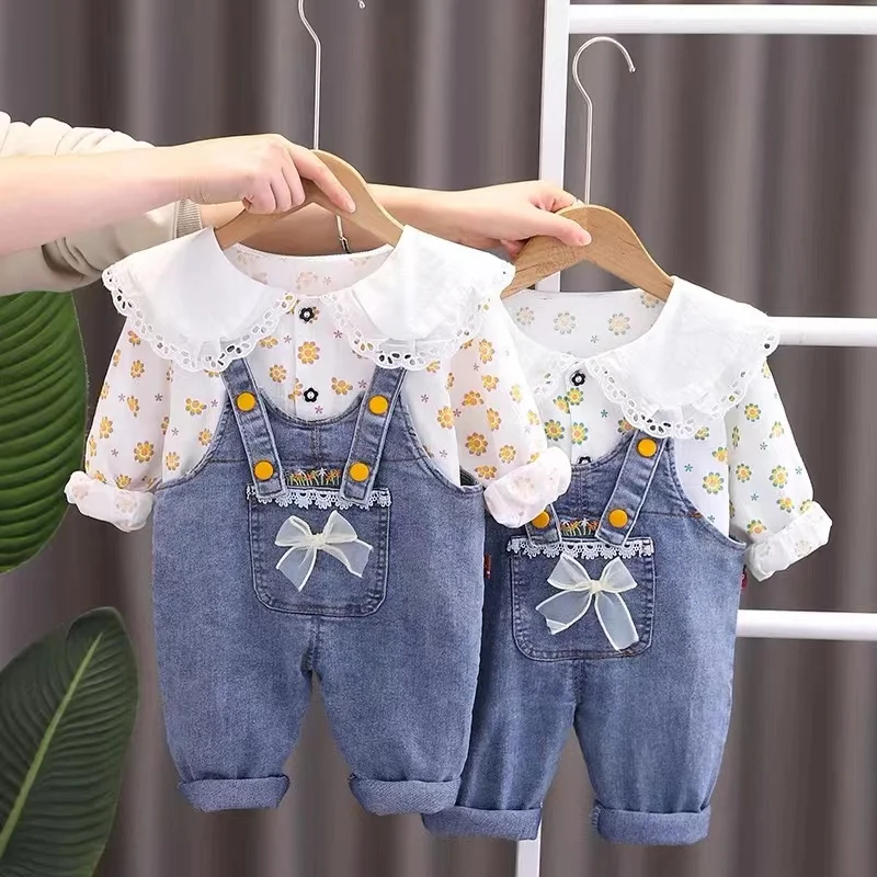 Весенне-осенний ковбойский комплект из двух предметов для девочек, новинка 2024, длинные брюки для девочек, рубашка, комплект из двух предметов