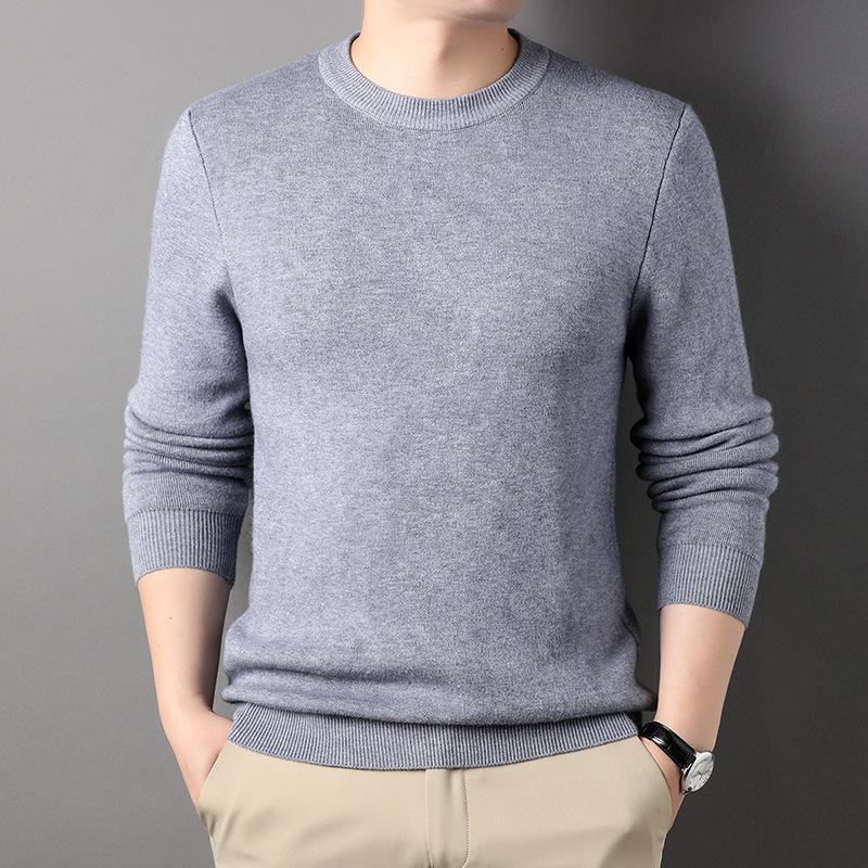 Весенне-осенний мужской однотонный повседневный свитер большого размера с круглым вырезом S серый