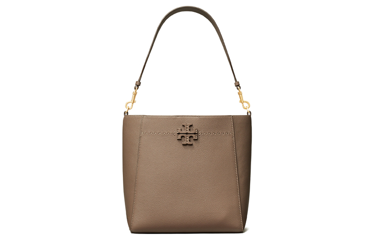 Кожаная сумка-ведро McGraw через плечо большого размера женская серо-коричневая TORY BURCH