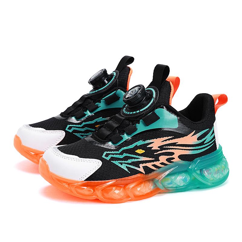 Весенне-осенняя детская дышащая сетчатая детская спортивная повседневная обувь с вращающейся пряжкой, обувь для девочек, размеры 28-39 39 чёрный/оранжевый