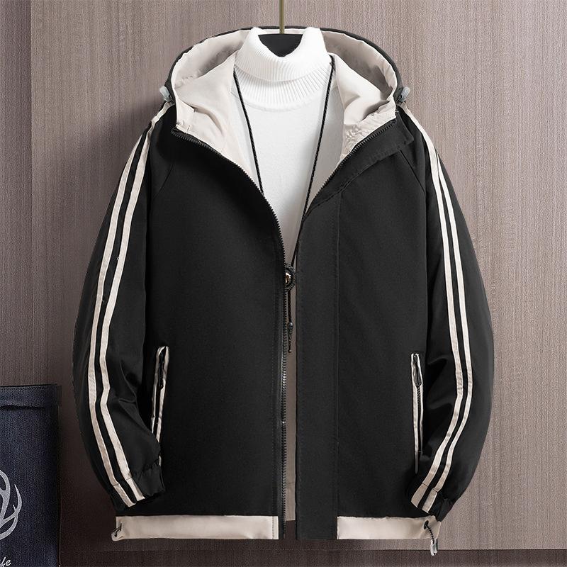 Весенне-осенняя модная брендовая куртка с капюшоном, мужская куртка, модная универсальная приталенная красивая спортивная повседневная куртка XXXXL чёрный