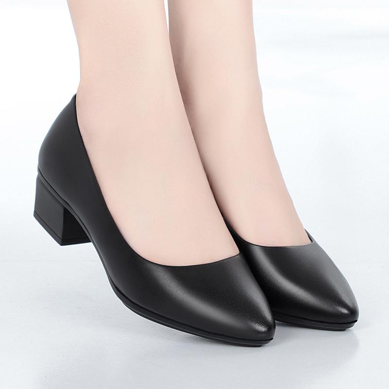Весенне-осенняя обувь новая женская обувь весенняя обувь для мамы толстый каблук удобная мягкая кожа мягкая подошва нескользящая рабочая кожаная обувь женская си 40