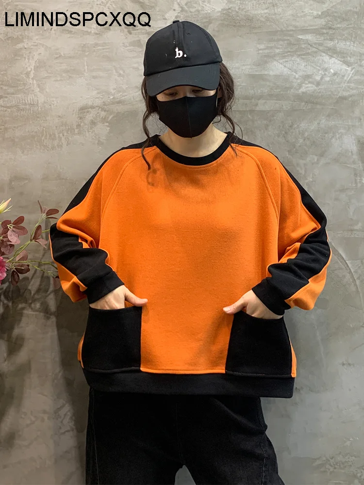 Весенние женские толстовки в Корейском стиле с круглым вырезом и карманами