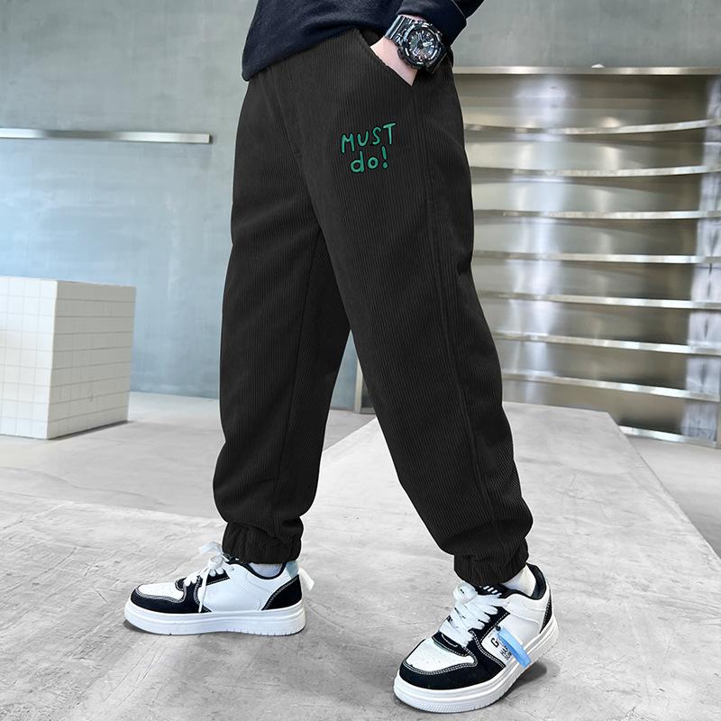 Весенние и осенние брюки для мальчиков Спортивные брюки для детей среднего и большого размера Утепленные брюки Детские повседневные брюки для детей 140cm чёрный