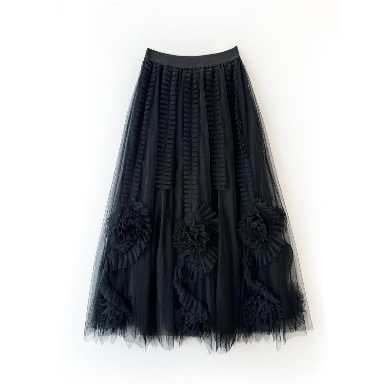 Весенние и осенние женские юбки Сказочная юбка, большая распашная длинная юбка из нежной сетчатой пряжи One Size чёрный