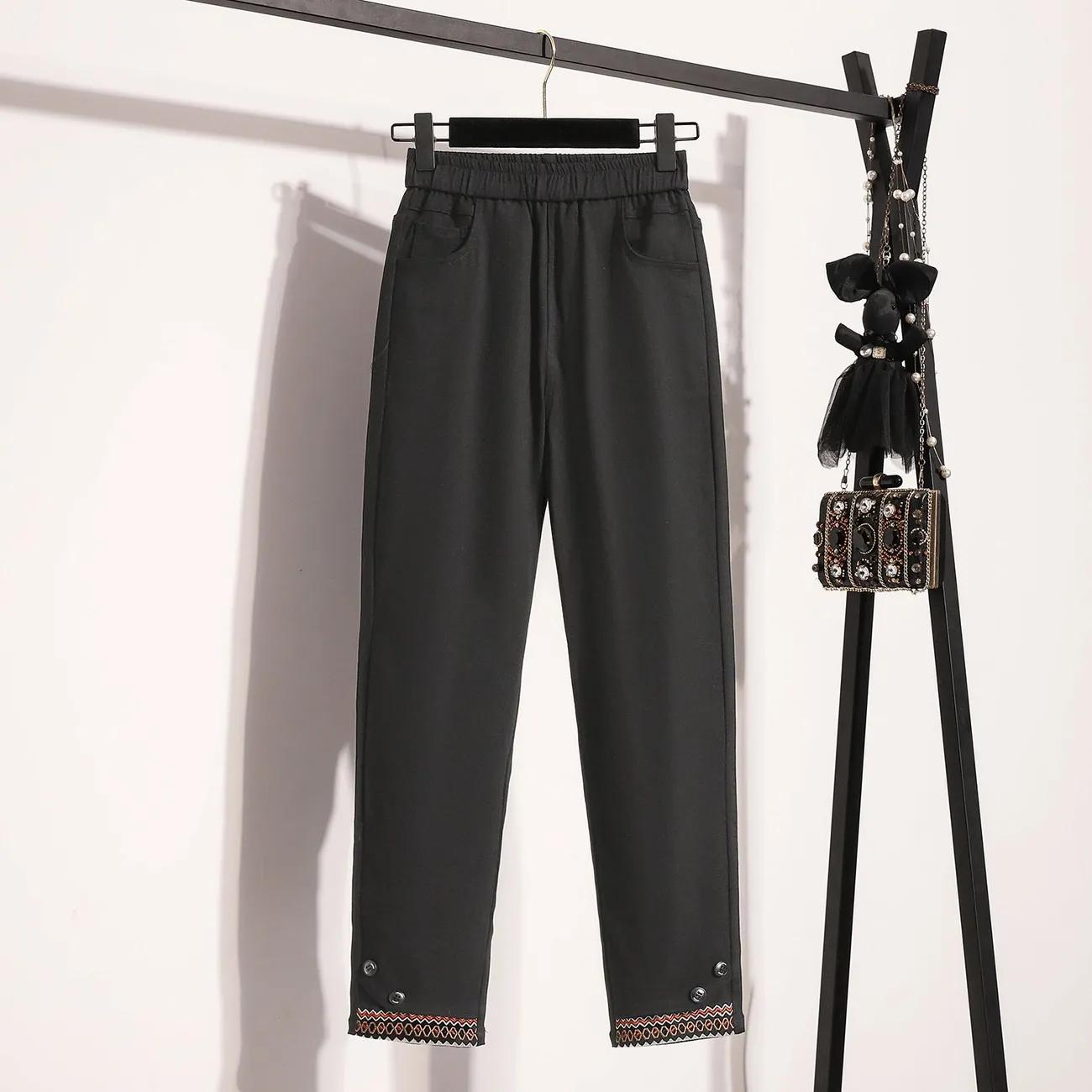 Весенние утягивающие брюки с высокой талией и маленькими ножками, женские длинные брюки больших размеров, эластичные базовые брюки, узкие женские брюки L чёрный