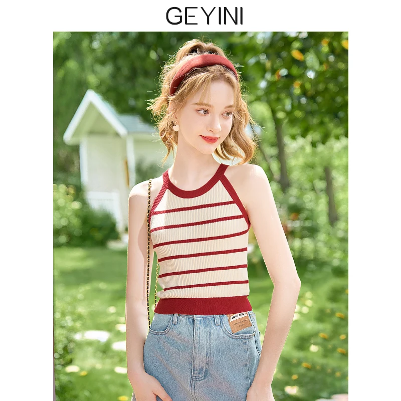 Весенний новый бренд женский трикотажный полосатый жилет короткий тонкий Топ Без Рукавов Для Женщин