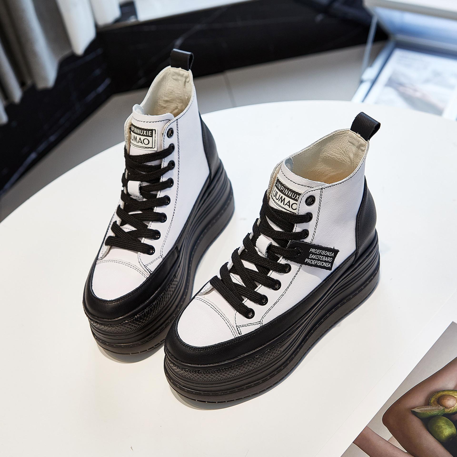 Весенний новый стиль, модная универсальная повседневная женская обувь с высоким берцем высотой 9 см, чистый белый цвет, трендовая 38 чёрный