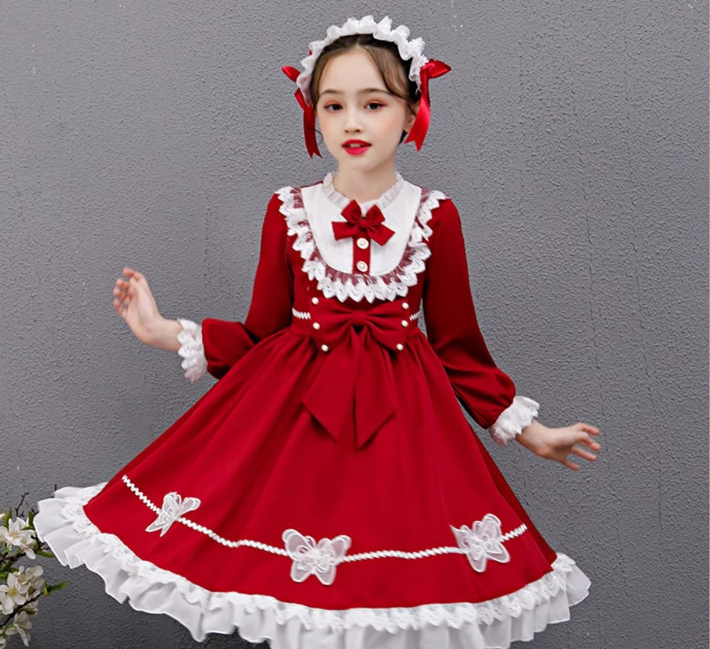 Весенняя детская юбка в стиле "Лолита", осеннее платье с длинными рукавами, платье принцессы в иностранном стиле для девочек "Лолита"