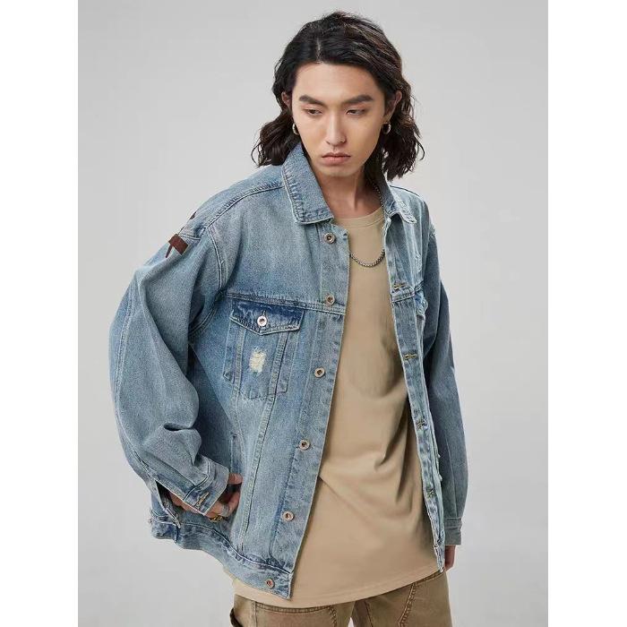 Весенняя джинсовая куртка в стиле граффити для мужчин, американская модная брендовая повседневная куртка с отворотами в стиле ретро 4XL светло-синий
