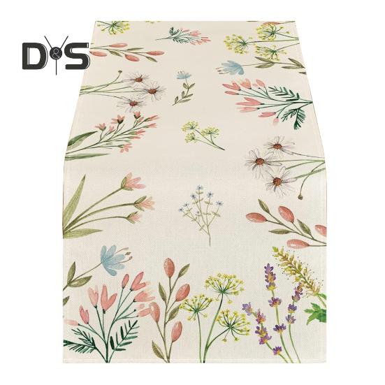 Весенняя дорожка на стол из цветочного льна, сезонные летние полевые цветы, украшение для кухни и столовой, декор для домашней вечеринки D