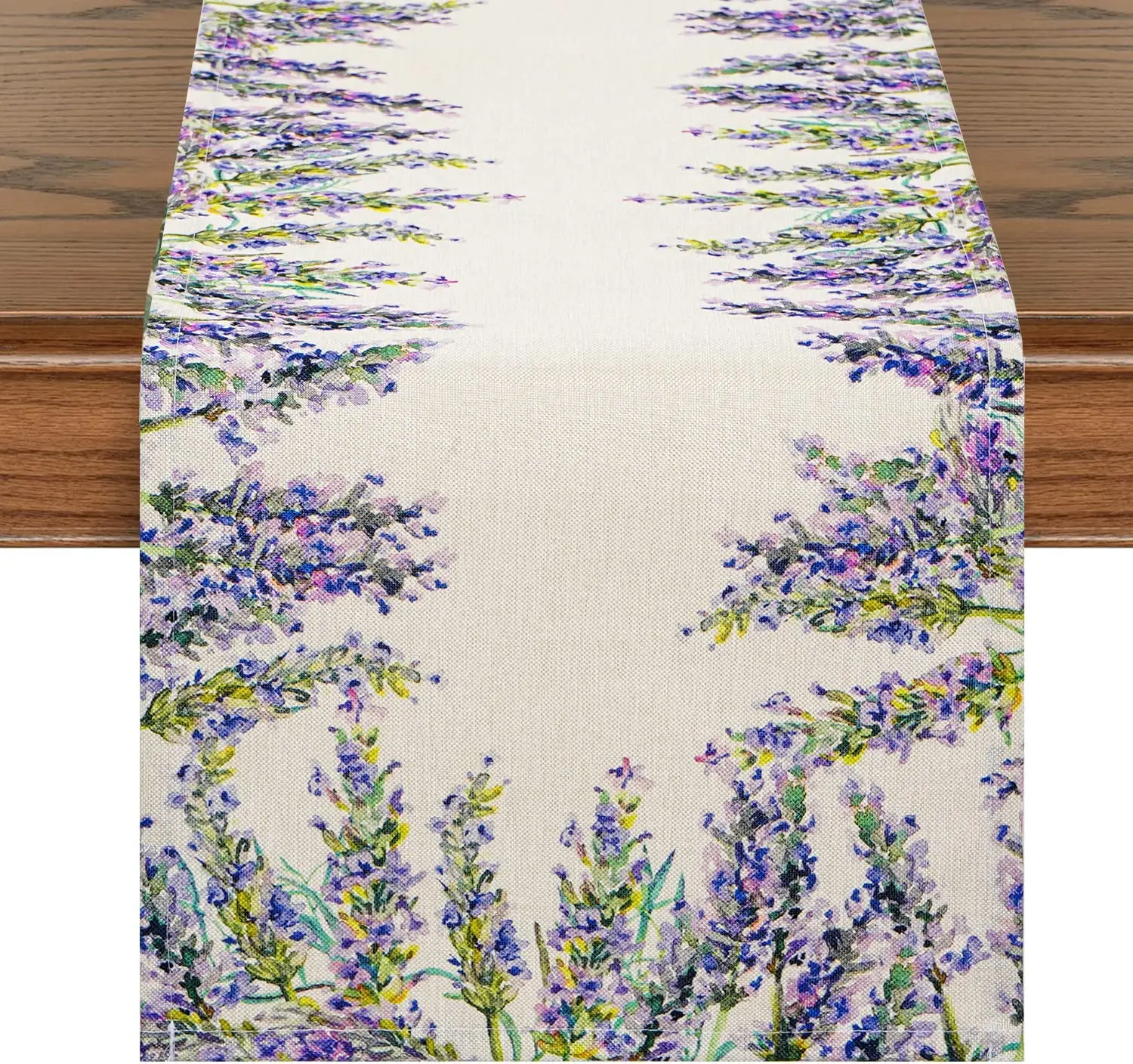 Весенняя льняная настольная дорожка с лавандой, свадебное украшение, фиолетовые цветы, праздничные настольные дорожки для дома, кухни, искусственный Декор
