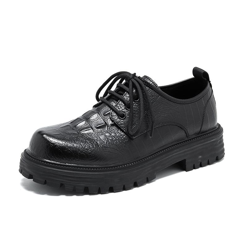 Весенняя мода на платформе, мужские туфли, оксфорды на толстой шнуровке, деловая официальная обувь, повседневная обувь на толстой подошве, удобная обувь 44 чёрный