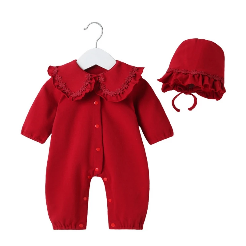 Весенняя одежда для новорожденных девочек, 100% хлопок, одежда принцессы для девочек, комбинезон + шапочка, одежда для дня рождения и крещения ...