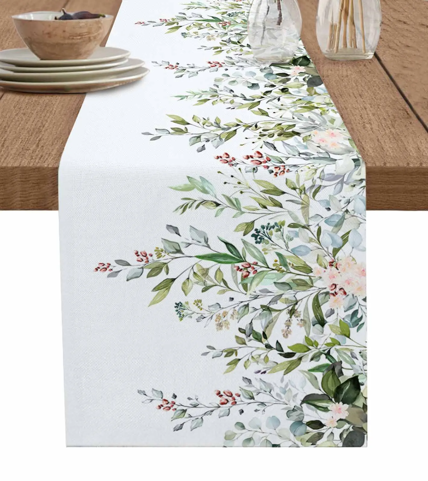 Весенняя подстилка из хлопка и льна с акварельными листьями эвкалипта
