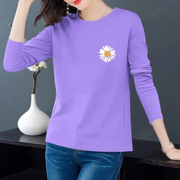 Весенняя футболка с принтом ромашки, пуловер с длинными рукавами, бутиковая нижняя рубашка, повседневная свободная рубашка для женщин M фиолетовый